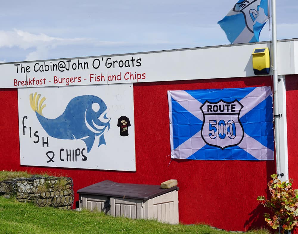 Am „The Cabin“ einem Imbiss, der Fish & Chips anbietet, kann man sich schließlich noch eine Stärkung mit Blick auf’s Meer genießen.